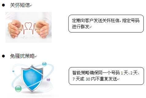签约企业通过系统可以对其客户定期发送关怀性质的短信,如:节假日关怀;