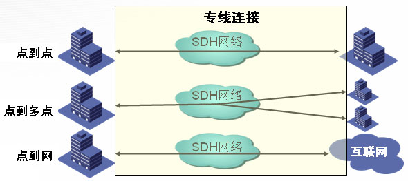 数字传输专线业务可组建点到点、点到多点及点到网的语音、数据及图像传输网络。