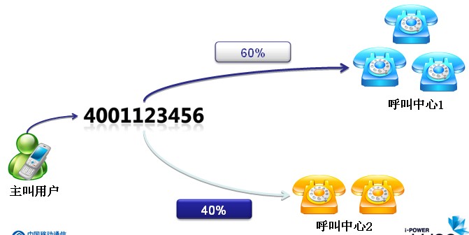 集团客户可以设定话务比例来选择呼叫的目的地号码,主叫用户呼叫次数按比例呼叫到相应的目的地号码。