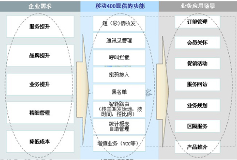 客户需求决定市场。移动400是中国移动为企业客户精心设计的综合通信门户,定位于向企业提供集语音、短信、客户管理为一体的综合信息解决方案,高度契合企业营销推广与客户服务全方位的需求,助力企业拓宽市场渠道、实现有效沟通,拓展无限商机!