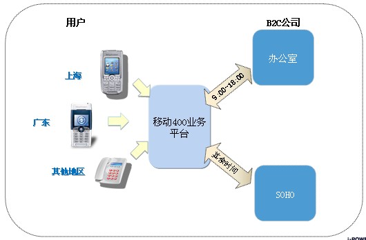 移动400业务是中国移动为集团客户提供的一种通信费用由主被叫共同承担的业务,该业务为企业提供全国统一的4001号码,可实现把对该号码的呼叫接转至事先设定的电话号码或呼叫中心上,并由主叫方承担本地通话费或漫游通话费,企业按主叫用户实际发话位置及呼入时长支付本地或长途通信费。移动400业务在提供语音服务的基础上,还增加了短/彩信互动、虚拟呼叫中心、客户关系管理等应用服务,帮助企业打造营销宣传和客户服务的综合接入门户。
